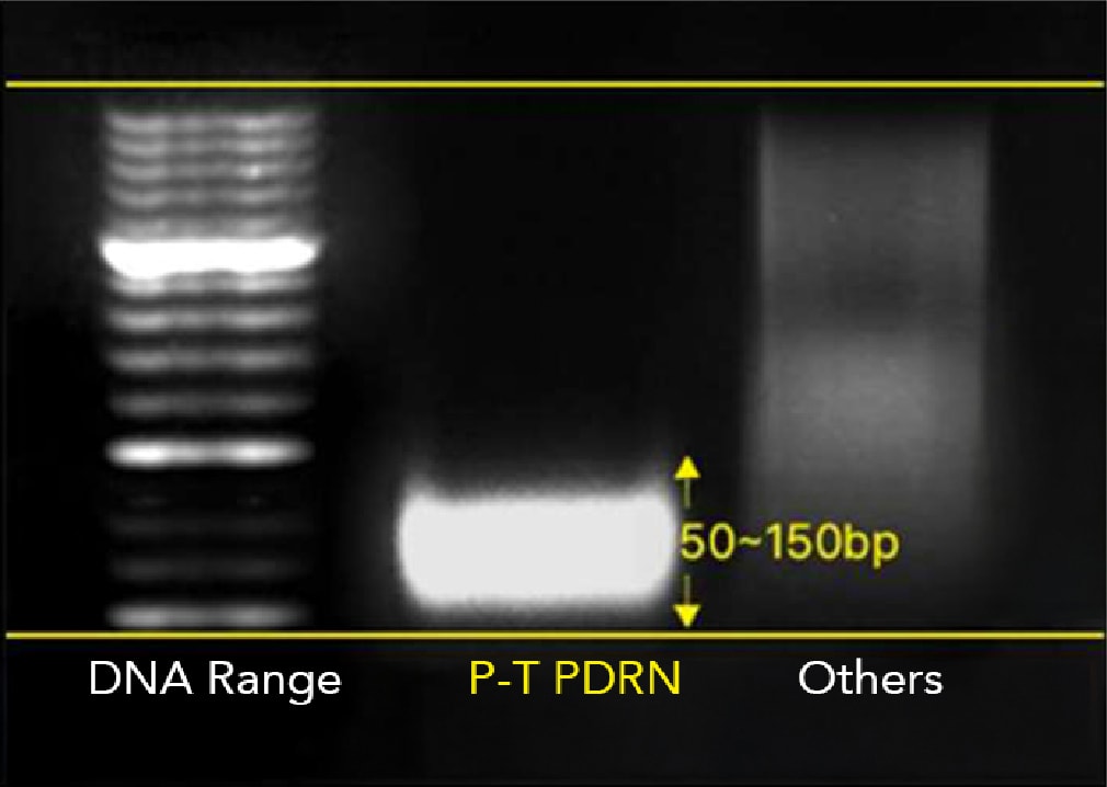 その中でも最も効果的な分子量は50bp~150bpであり、セルベインのプリズムテクノロジーPDRNは、他社および主要国のPDRNと比較して高純度の、50bp~150bpの純度99.9%のPDRNのみを抽出して使用しています。